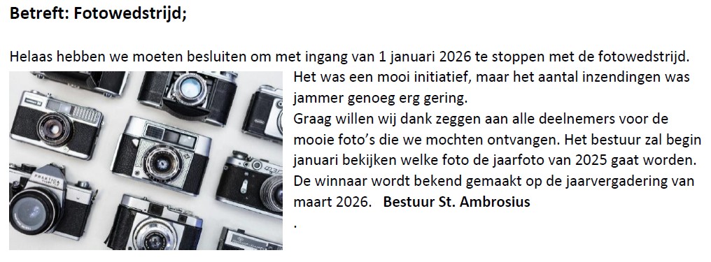 Beeindiging fotowedstrijd per 1 januari 2026 a.s.